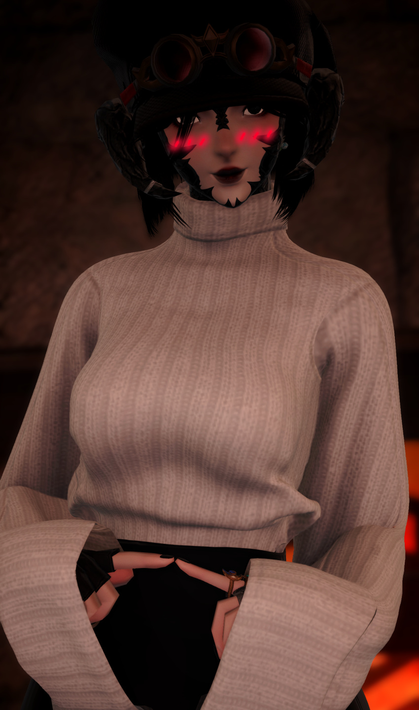 Tags: au rablack eyeblack eyesblack fingernailsblack hairblack lipstickblushfemalefinal fantasy xivglasseshornsimageboardmarul (ffxiv)one-eyedoversized hatRule34scalessfwshort hairshysolowhite eyexaela
