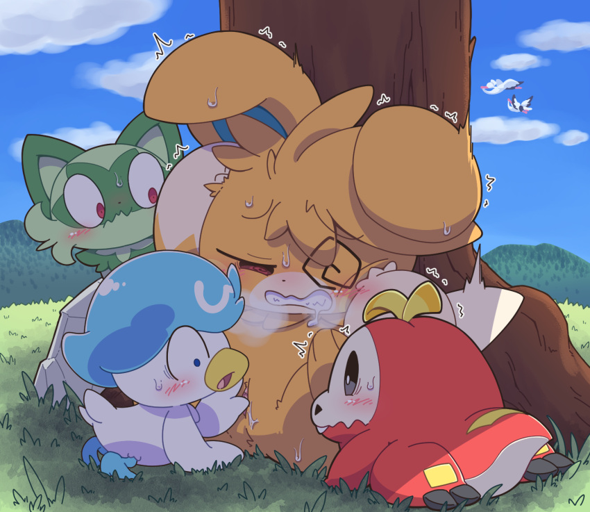Tags: ambiguous genderanthrobipedblushbodily fluidsdetailed backgroundfemalefuecocofurgeneration 9 pokemongenital fluidsgenitalsgreen bodygreen furgrouphi resimageboardnettsuunintendoopen mouthorange bodyorange furpawmotpokemonpokemon (species)pussypussy juicequaxlyred bodyred eyesRule34spiral eyessprigatito