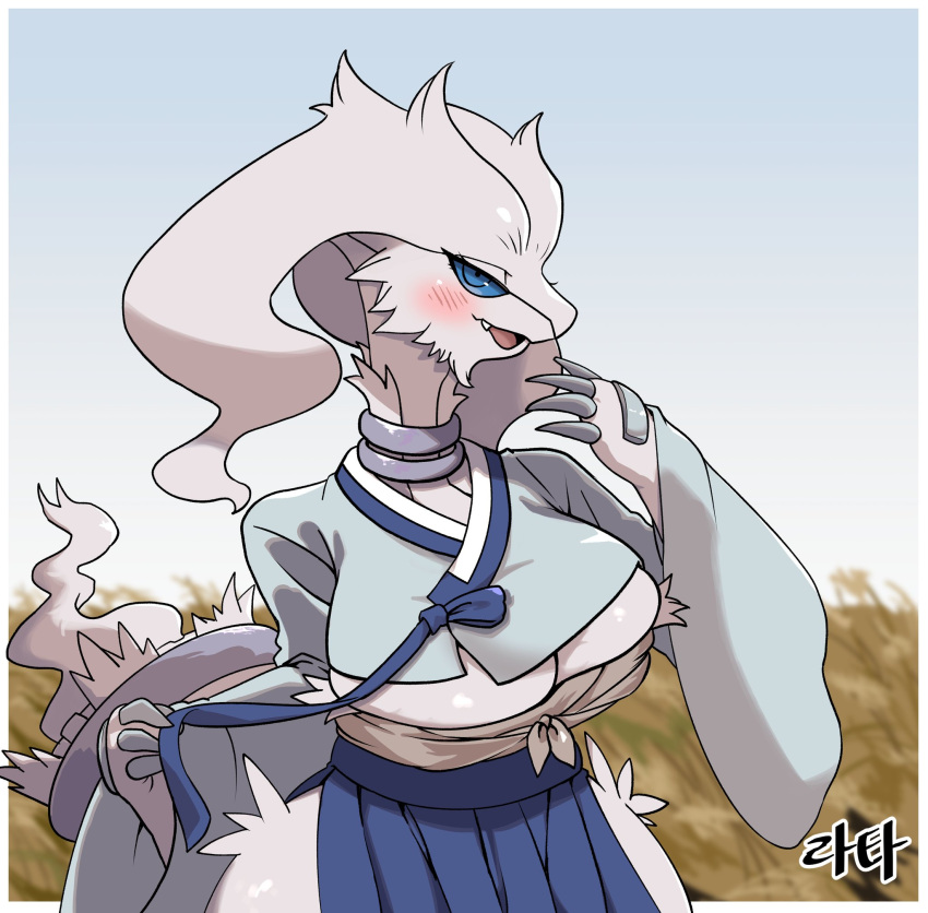 Tags: anthrobipedblue eyesblushborderbreastscleavageclothedclothingdetailed backgroundfemalefurgeneration 5 pokemonhi resimageboardlegendary pokemonlooking at viewernintendopokemonpokemon (species)ratta108reshiramRule34solowhite bodywhite borderwhite fur