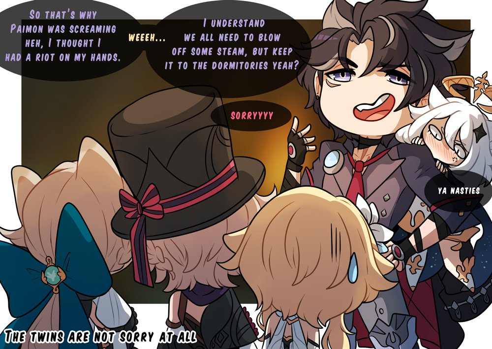 Tags: chibienglish textfemalegenshin impacthatimageboardkinkymationlumine (genshin impact)lynette (genshin impact)lyney (genshin impact)malepaimon (genshin impact)Rule34smiletexttop hatwriothesley (genshin impact)
