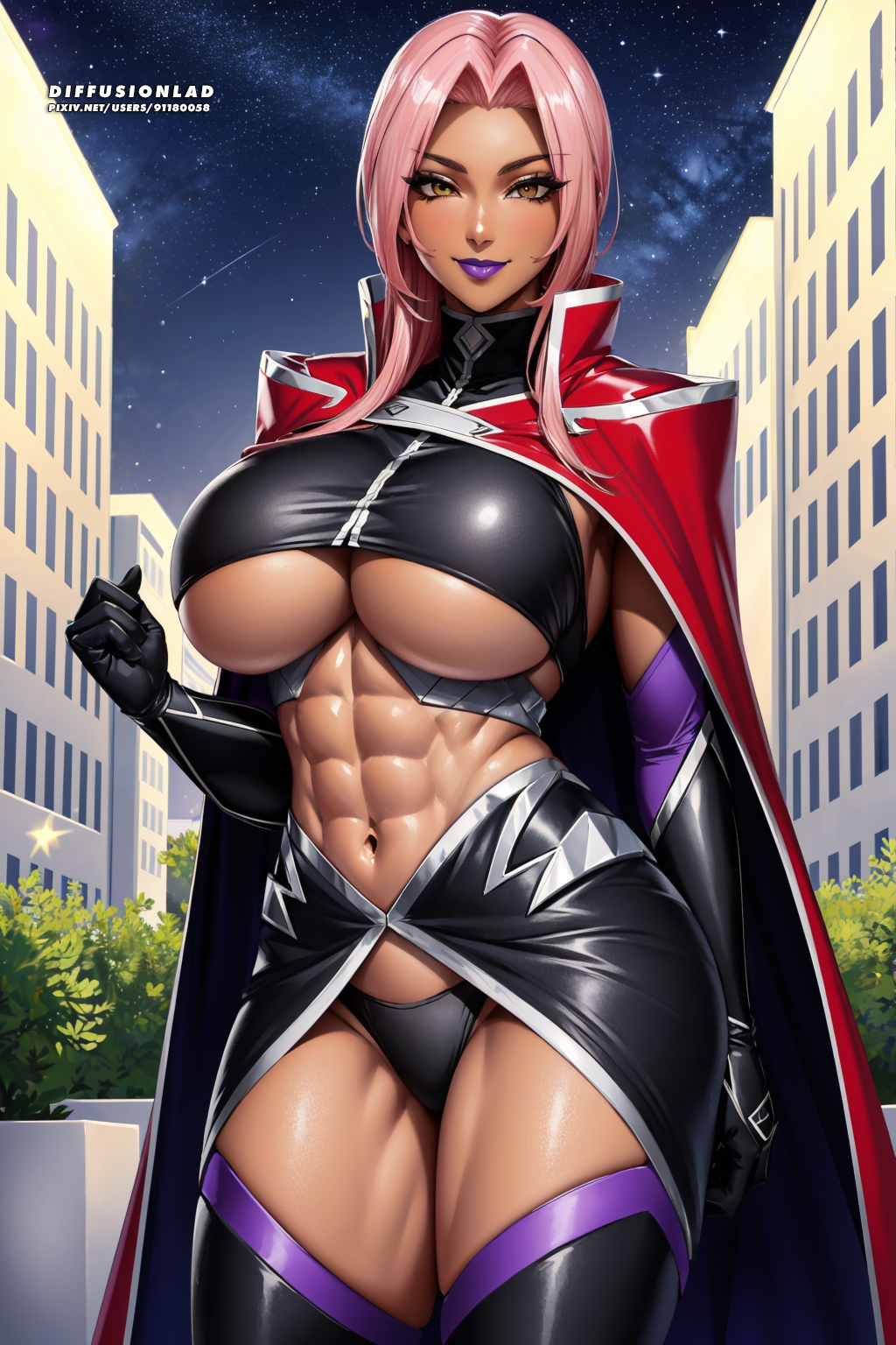 Tags: 1girlsai generatedcurvaceouscurvy bodycurvy femalediffusionladhuge breastsimageboardingrid (taimanin asagi)latex gloveslatex thighhighslong hairpink hairRule34seductive lookstable diffusiontaimanin (series)violet lipstickvoluptuousvoluptuous female