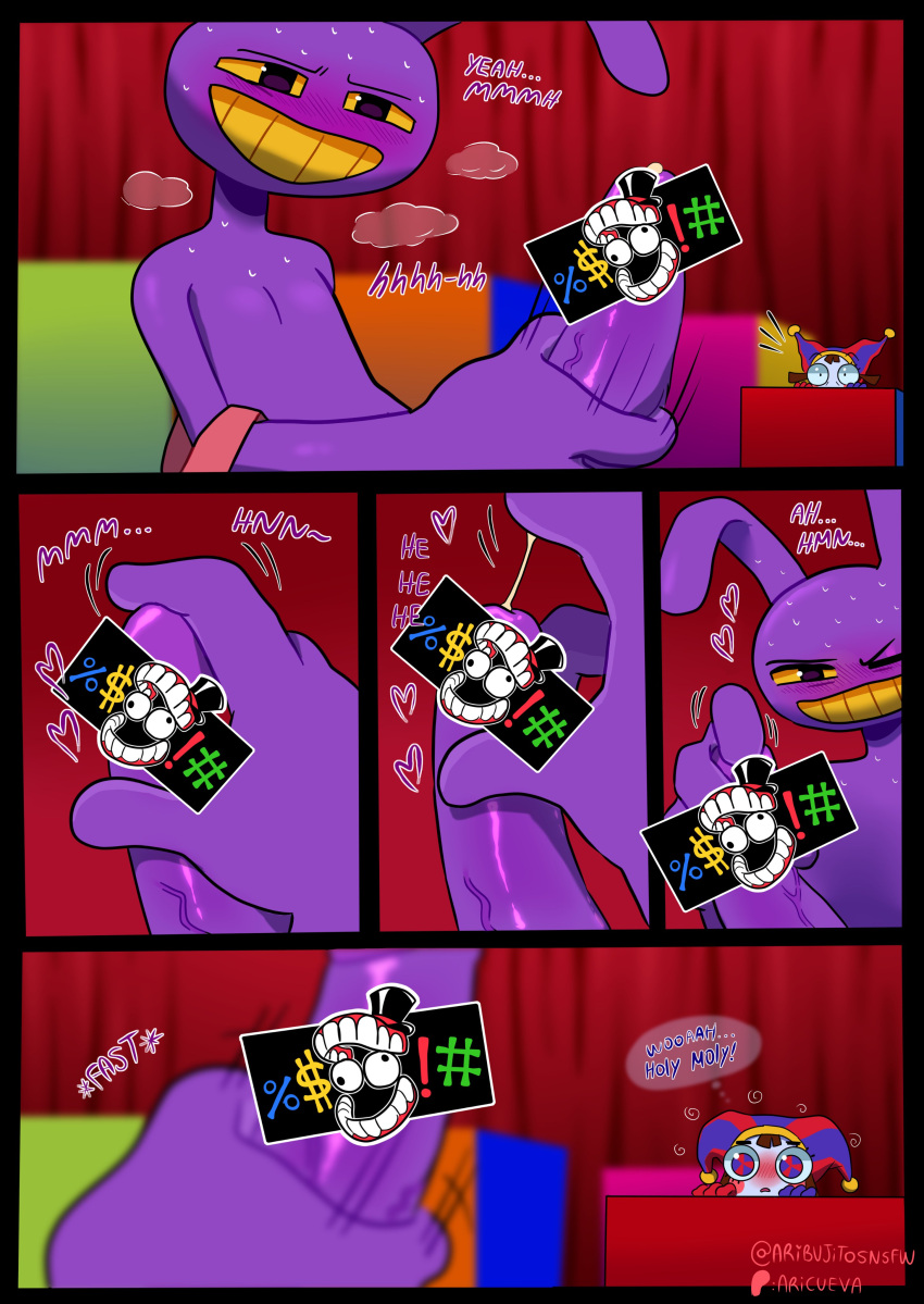 Tags: 20232d2d (artwork)5 panel comicabsurd resanthroari dibujitosartist namebodily fluidscensor barcensoredcensored genitaliacensored penisclothingcomicduoenglish textfemalefool's hatfurgenital fluidsglitch productionsglovesgooseworxhandwearhatheadgearheadwearhi reshumanimageboardjax (the amazing digital circus)jesterlagomorphleporidmalemale focusmammalmasturbationpomnipomni (the amazing digital circus)precumpurple bodypurple furrabbitRule34textthe amazing digital circusthought bubblevoyeuryellow sclerayellow teeth