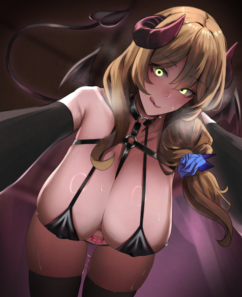 Tags: absurdresbikiniblonde hairbreastschokerdemon girldemon hornsdemon taildemon wingsenglish commentaryfemaleflowergenshin impactglowingglowing eyesgreen eyeshair between eyeshair flowerhair ornamenthans-kunhighreshornsimageboardlarge breastslicking lipslisa (genshin impact)long hairlooking at viewerlooking downlow ponytailponytailRule34solosweatswimsuittailtonguetongue outwings