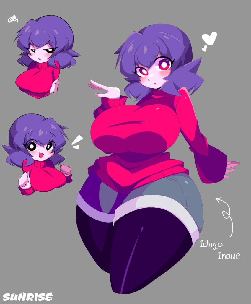 Tags: 1girlsbig breastsblushbreastshuge breastsichigo inoue (sunrisenew)imageboardlight-skinned femaleoriginal characterpurple hairred eyesRule34shortssolosunrisenewsweatertagmethick thighsvoluptuous