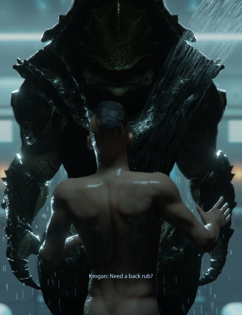 Tags: 3d (artwork)aliendigital media (artwork)duoenglish texthairhi reshumanimageboardimminent sexinterspecieskroganlarger malemalemale/malemammalmass effectmuscularmuscular malenudepropositioningpublicpublic showerrookingRule34showersimple backgroundsize differencesmaller malesource filmmakerstandingtextwaterwet