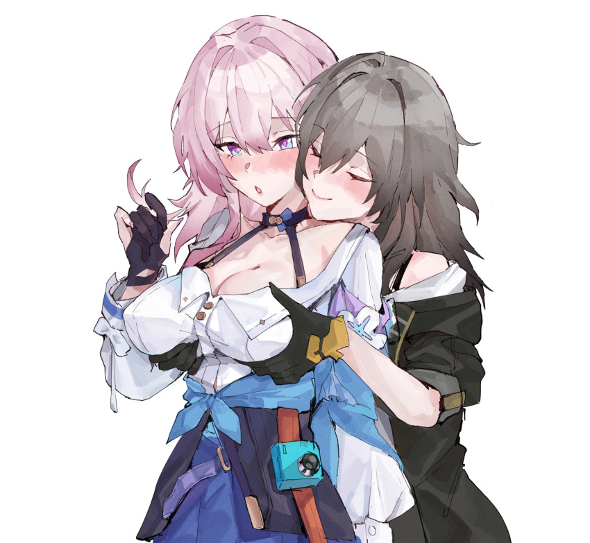Tags: 2girlsblushbreastschestnut mouthcleavageclosed eyesclosed mouthglovesgrabbinggrabbing anothers breastgrey hairhighreshonkai (series)honkai: star railimageboardjacketlarge breastsmarch 7th (honkai star rail)multicolored eyesmultiple girlspartially fingerless glovespink hairRule34simple backgroundstelle (honkai: star rail)tied jackettrailblazer (honkai: star rail)white backgroundwktfrv47nyuri