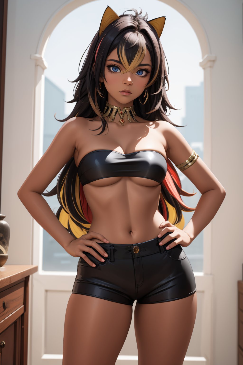 Tags: 1girlsai generatedblue eyesbrabreastscat earsdark skindehya (genshin impact)femalefemale onlygenshin impacthand on hipimageboardmedium breastsmulticolored hairnavelRule34solostable diffusionunderboob