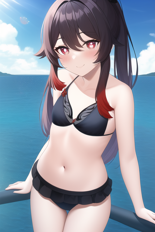 Tags: ai generatedbikiniblushbrown hairfemalefemale onlygenshin impacthu tao (genshin impact)imageboardlooking at viewermihoyonai diffusionpetiteponytailred eyesRule34small breastssmilestable diffusionswimwear