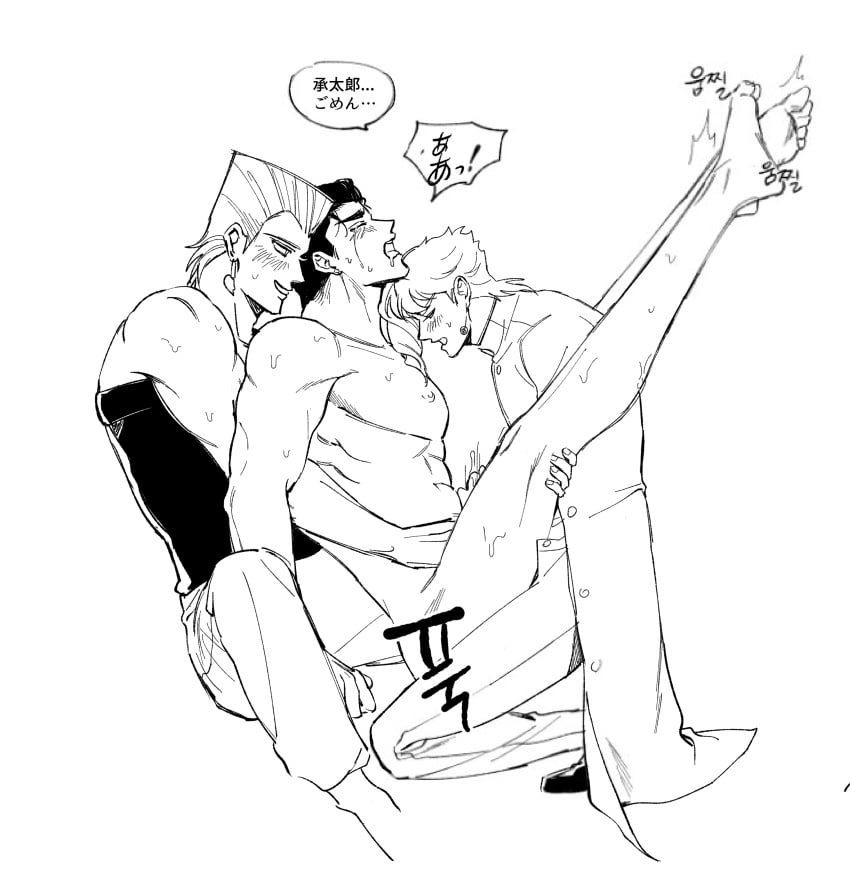 Tags: 3boysclosed eyesgayimageboardjean pierre polnareffjojo's bizarre adventurejotaro kujolegs upmalemale onlymale/male/malemmm threesomenoriaki kakyoinopen mouthRule34stardust crusadersthreesomeyaoi