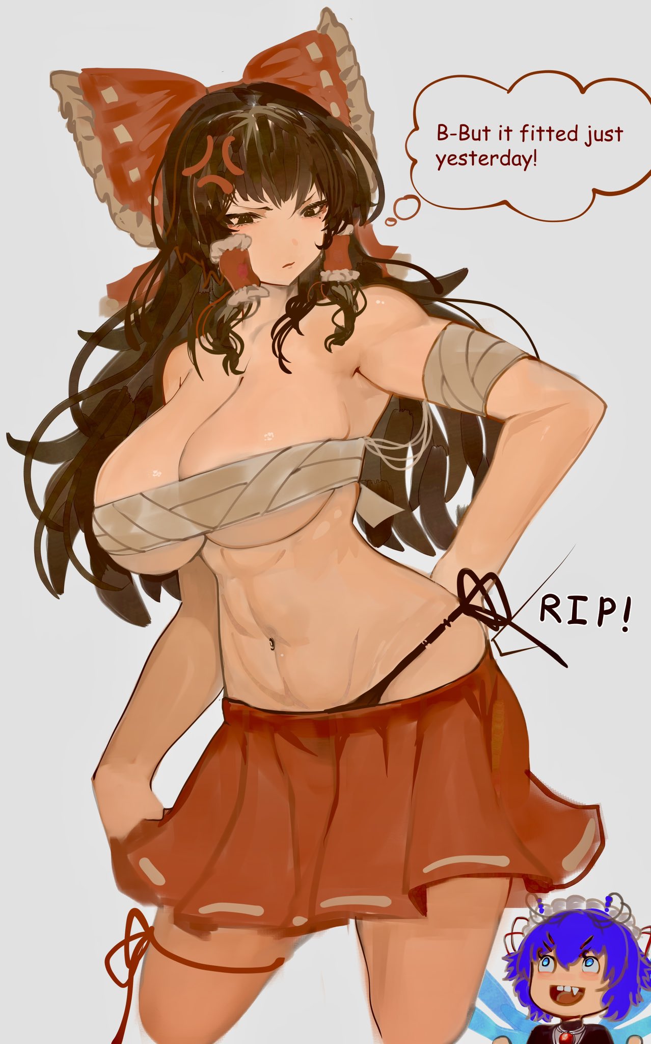 Tags: 1girlsanger veinbarely clothedbig breastsbreastsbrown eyesbrown haircleavagecurvycurvy femaleenglish textimageboardlight-skinned femalelong hairmikopantiesreimu hakureiRule34sarashishrinkingskirttextthighsthought bubbletomatolover16touhouunderboobwardrobe malfunctionwhite background