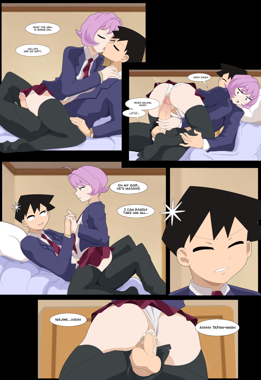 Tags: 2boysbedblack hairchildhood friendclothedcomiccomic pagecrossdressingcumcum in asscum insidecummingcumming from anal sexcumming insidecumming while penetratingdialogdialoguedialogue boxfemboygaygay analgay kissinggay seximageboardkissingkomi-san wa komyushou desuosana najimipenetrationpink hairRule34school uniformsexskirttadano hitohitotexttext boxtext bubbletongue kiss