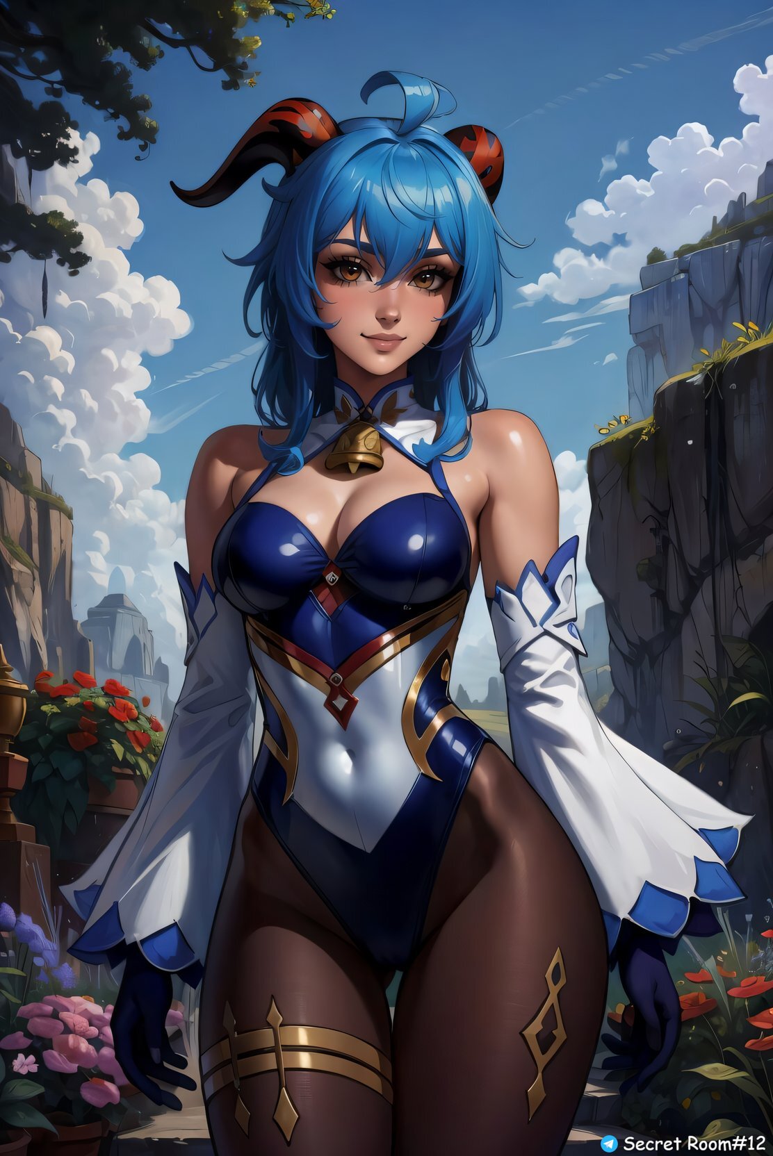 Tags: ai generatedblue hairfemalefemale onlyfront viewganyu (genshin impact)genshin impactglovesimageboardRule34secret room12shiny skinstable diffusionyellow eyes