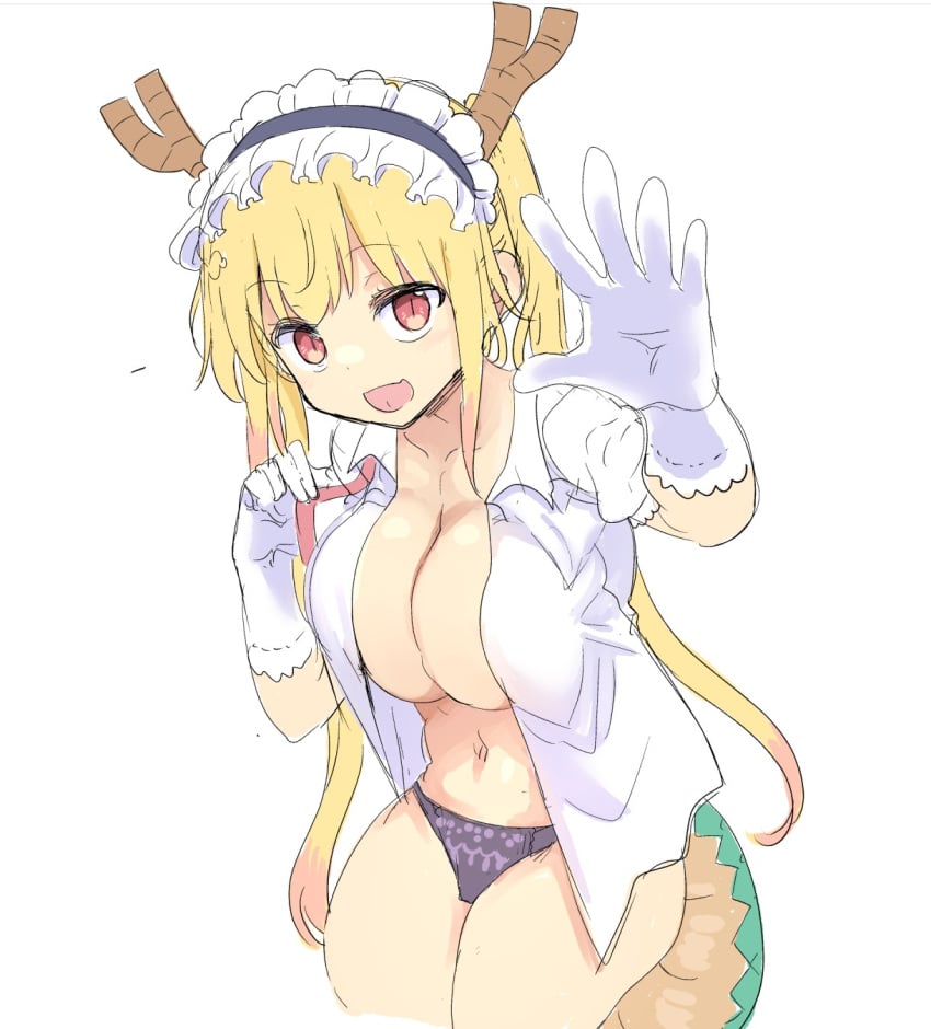 Tags: 1girlsbig breastsblonde haircool-kyou shinjadragon girldragon hornsdragon tailfemalegloveshornsimageboardlarge breastslight-skinned femalelong hairmaid headdressmiss kobayashi's dragon maidmonster girlopen clothespantiesRule34solotohru (dragon maid)twintailswhite background