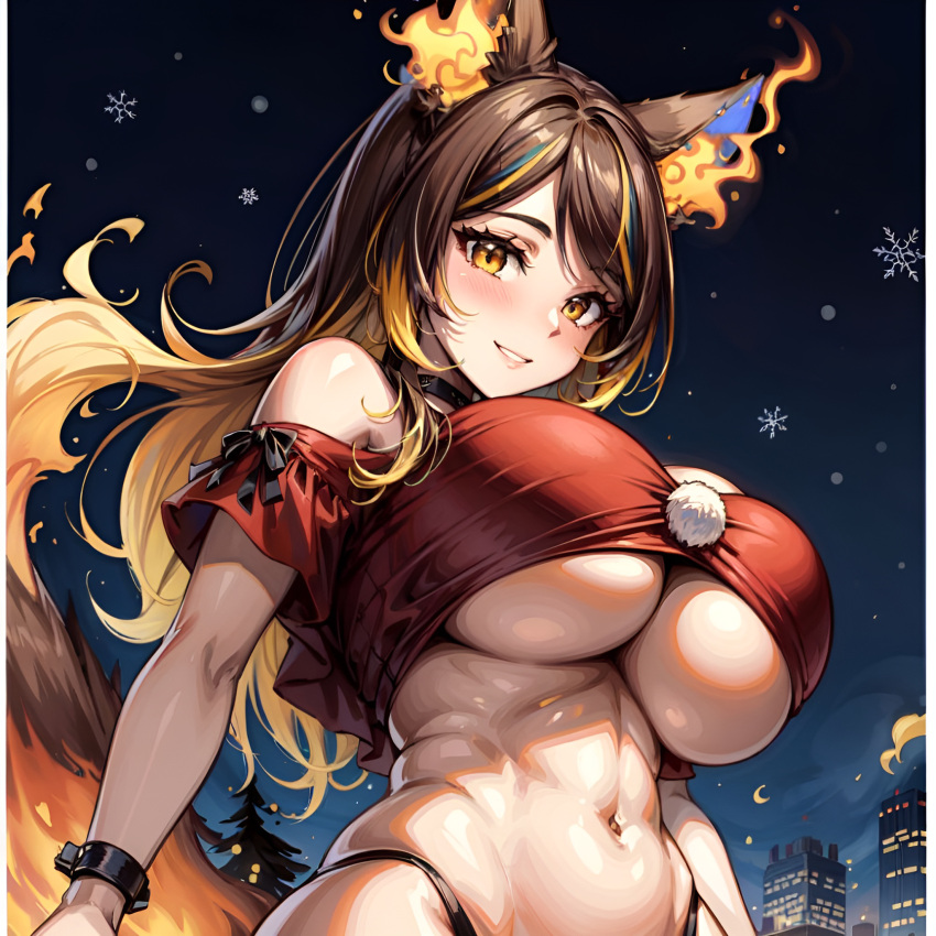 Tags: 1girlsai generatedanimal earsarbitrarybrown hairchristmaschristmas outfitfiery tailfiregrinninghi reshuge breastsimageboardlarge breastsRule34sinder (vtuber)stable diffusiontwo tone hairunderboobvirtual youtuberwolf earswolf girlwolf tailyellow eyesyellow hair