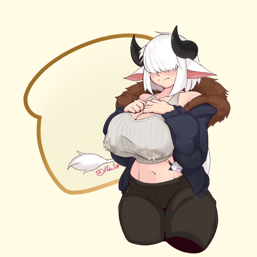 Tags: 1girlsabsurd resbig breastsclothingcow earscow girlcow hornscow tailfemalefemale onlyhair between eyeshands on chesthornsimageboardklebo stufflactationlactation through clotheslight skinlight-skinned femalemedium hairnipple bulgeRule34solotailthick thighsuya (klebo stuff)white hair