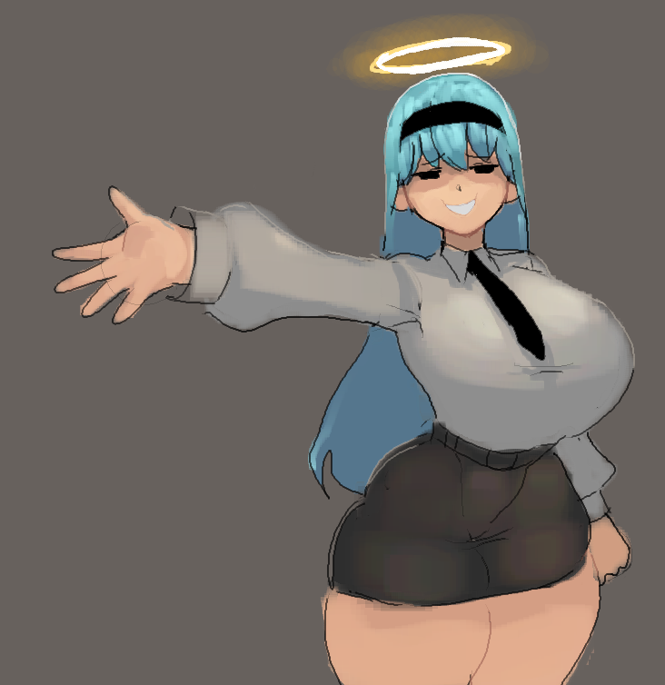 Tags: 1girl1girlsangelbig breastsblank backgroundblue hairextended armhuge breastsimageboardlewdicrousartlong hairlooking at viewerloose sleevesRule34shirtshort skirtsimple backgroundsimple noseskirtsmilesmiling at viewersolothick thighstietight clothing