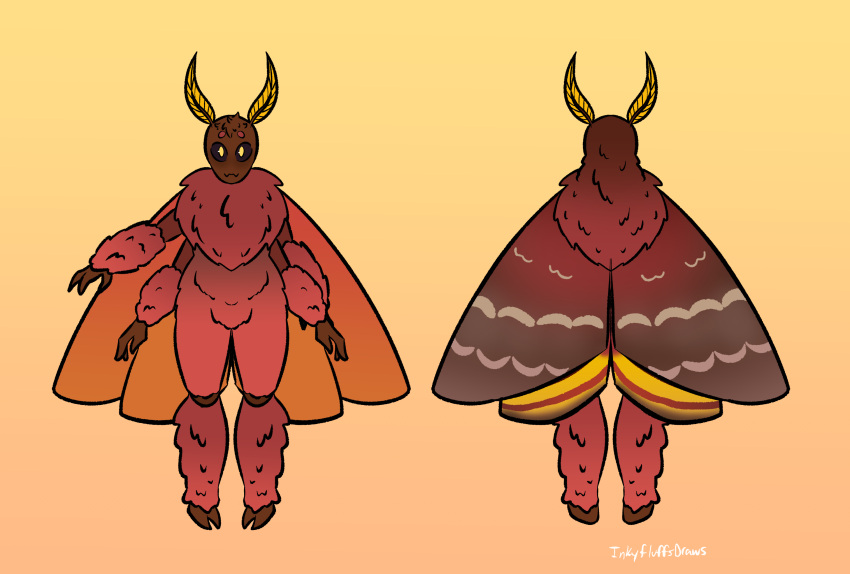 Tags: 1boy1maleantennae (anatomy)anthrobrown furbrown hairfluffyfluffy chestfurimageboardinkyfluffdrawsinsectsleg tuftlepidopteranmalemale onlymothmultiple armsred furreference sheetRule34simple backgroundsolowings