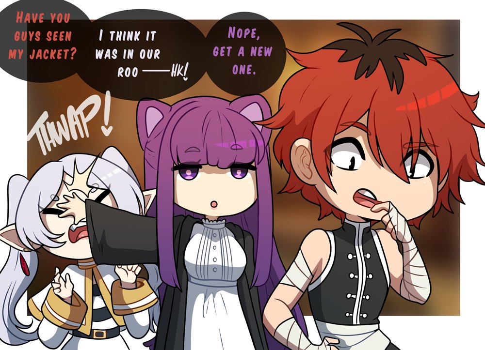 Tags: 1boy2girlsanimal earscat earsclothedclothingelfelf earself femaleenglish textfern (sousou no frieren)frierenfrieren beyond journey's endimageboardkinkymationlight skinlight-skinned femalelight-skinned malelong hairopen mouthpink hairpointy earsred hairRule34sousou no frierenspeech bubblestark (sousou no frieren)texttwintailswhite hair