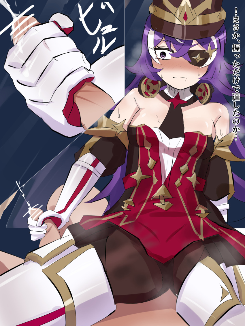 Tags: 1boy1girlsbar censorblushcensoredchevreuse (genshin impact)close-upclothed female nude malecumejaculationeye patchfemale on topgenshin impactgloved handjobgloveshandjobhoyoverseimageboardjapanese textlight skinlight-skinned femalelight-skinned malemihoyonizinizisainose blushone eye obstructedpurple eyepurple hairRule34sweattagmetext