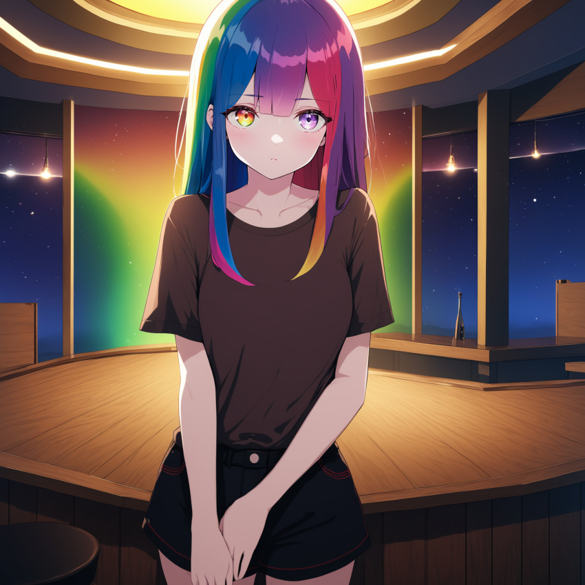 Tags: 2023ai generatedbangsblack shirtblue hairblushbreastscollarbonecowboy shotfemaleheterochromiahigh resolutionhighresimageboardindoorslong hairlooking at viewermulticolored eyesmulticolored hairnightoriginalparted lipsphalzupurple eyespurple hairRule34self uploadshirtshort shortsshort sleevesshortsskysolostandingstar (sky)starry skyt-shirtyellow eyes