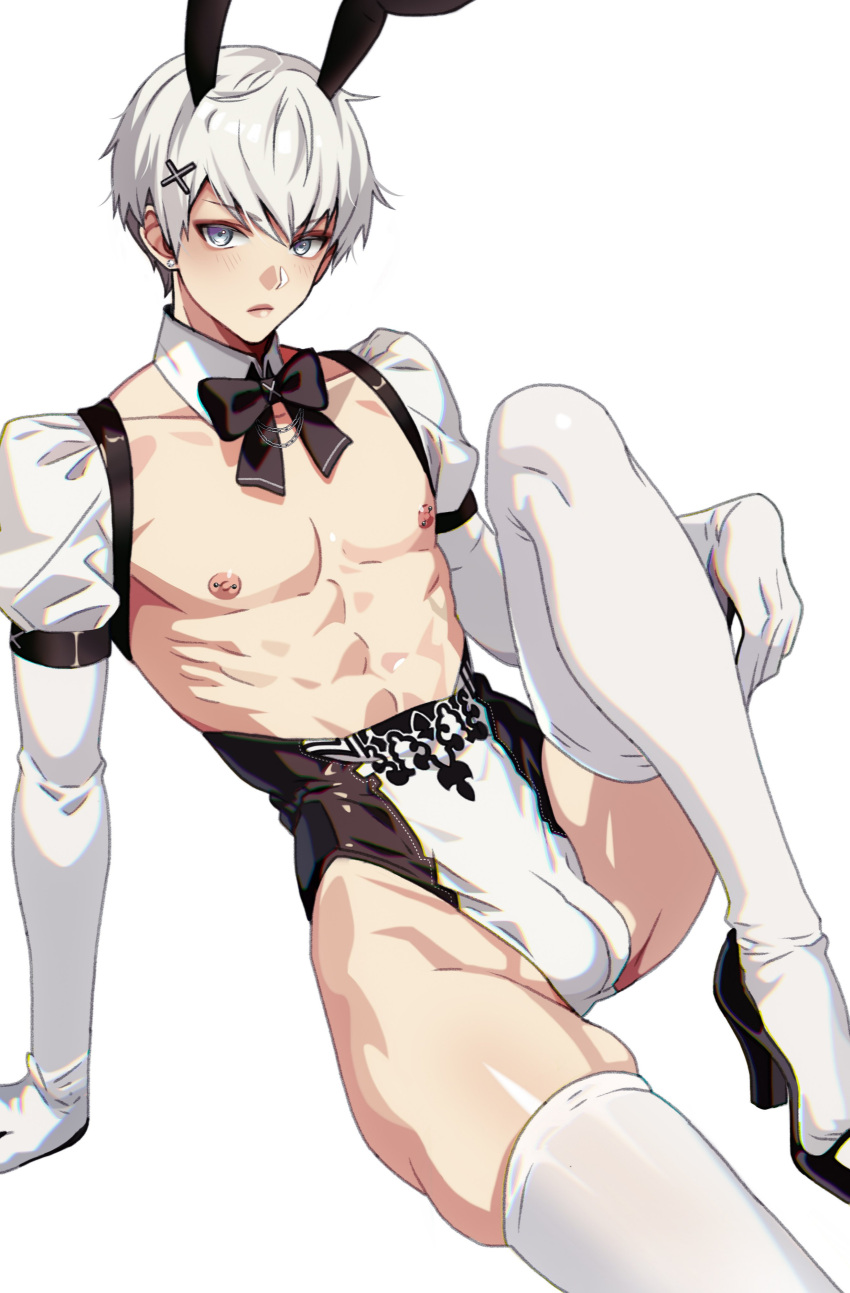 Tags: 1boyalecnsfwballsballs under clothesbulgebunny earsbunnysuitcrossdressingfemboyimageboardlight skinlight-skinned malelooking at viewermalemale focusniernier: automatapenis under clothespierced nipplesRule34short hairtesticlesthighhighstrapwhite backgroundwhite hairyorha 9s