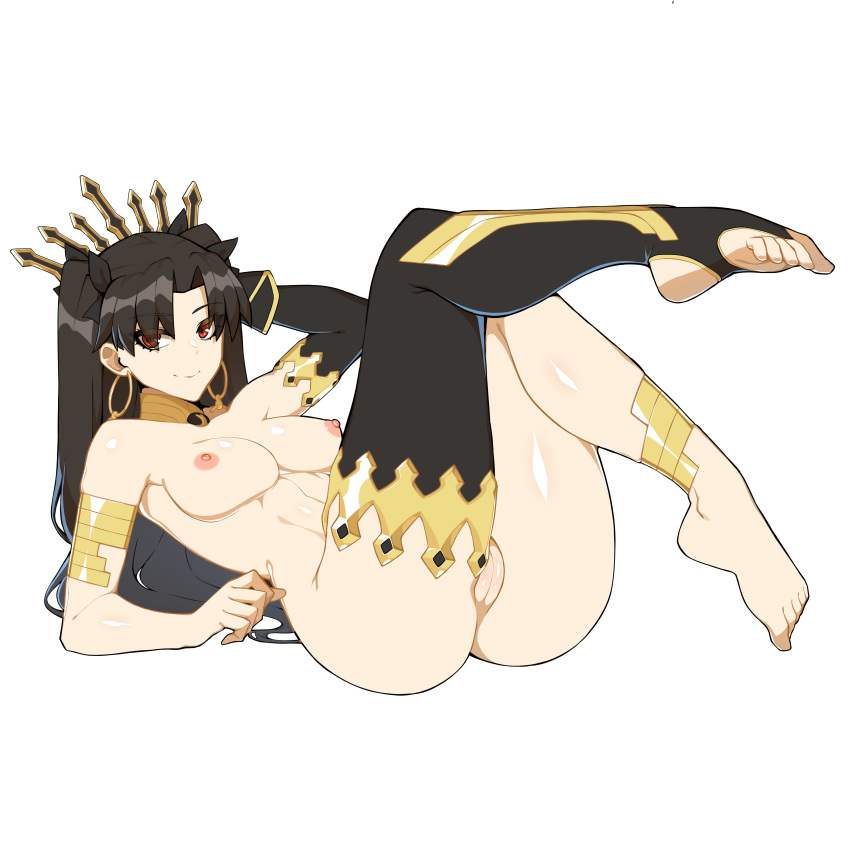 Tags: 1girlsblack hairblushbreastsfate (series)fate/grand orderimageboardishtar (fate)legslong hairlooking at viewerlyingpussyred eyesRule34shiny skinsimple backgroundsmileterebozu92twintails