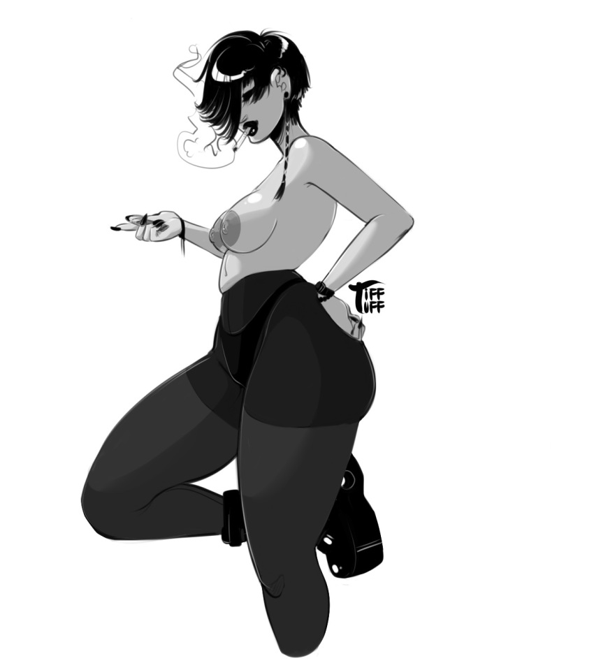 Tags: 1girls2017artist logoartist nameartist signatureblack and whiteblack hairblack lipstickblack nailsbootsbreastscigaretteearringsgothgoth girlimageboardlarge areolaemedium breastsmonochromeoriginaloriginal characterRule34sharp fingernailsshort hairsmokingthick eyelashestifftufftoplesstopless femalewristband