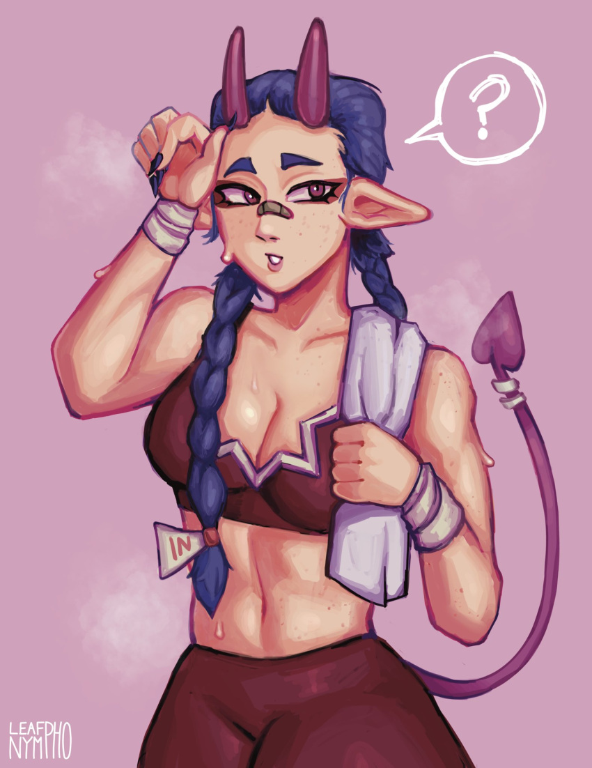 Tags: 1girlsbandaidbandaid on noseblue hairbraiddemon tailfemalefemale onlyfreckleshi reshornsimageboardkori (porqueloin)leafnympholong hairlooking at vieweronioni hornspink backgroundpink eyespointy earsRule34sharp fingernailssolosolo femalesteamtailtoweltowel on shouldertwin braidsworkout clothes