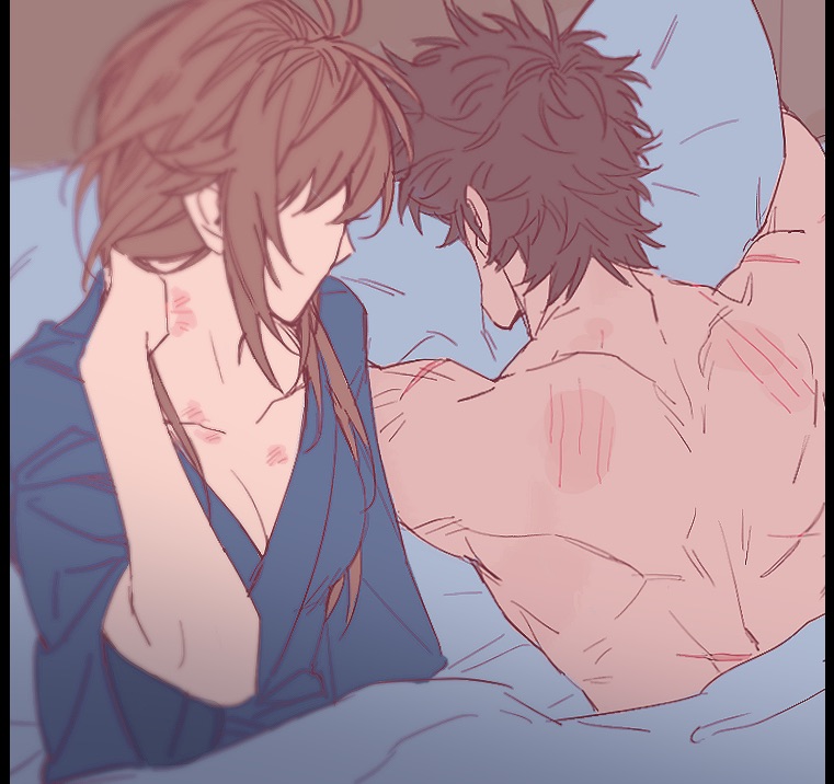 Tags: 1boy1girlsafter sexback musclesbrown haircleavagefemalegintamahickeyhickey marksimageboardin bedkimonolong hairlooking at anothermalemessy hairmorning aftermuscular malemutsu (gintama)on bedon stomachRule34sakamoto tatsumascarsscratchessittingtopless male