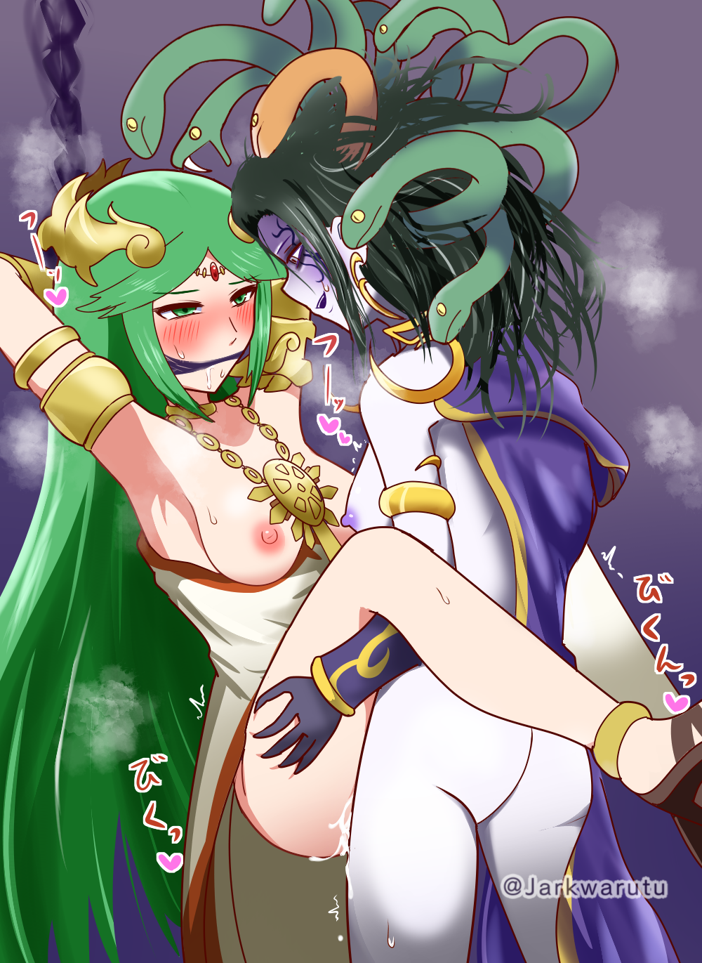Tags: 1futa1girlsalternate version at sourcealternate version availableareolaearms tied behind headassblushblush linesbondagebreastschainsclothedclothingcumcum insidecum overflowdark green hairdrooldroolingdubious consentduoexposed breastsfemalefuta on femalefutanarifutanari penetratinggaggaggedgreen eyesgreen hairgrey eyesheartshumanhumanoidimageboardimplied futanarijapanese textjarkwarutukid icaruskid icarus uprisinglight skinlight-skinned femalelight-skinned futanarilooking at partnermedusa (kid icarus)mostly nudenintendonipplesno dialogueno pantiesnudepalutenapartially clothedpartially nudepink nipplespurple nipplesrapeRule34snake hairstandingsweatingtextupright straddle