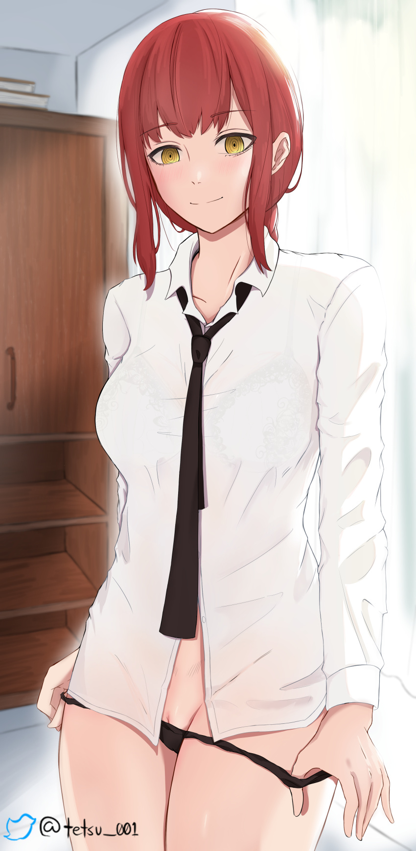 Tags: absurdresblack necktieblack pantiesblushbrabraidbraided ponytailbreastschainsaw manclosed mouthcollared shirtcommentarycowboy shotcurtainsdaydrawerdress shirtenglish commentaryfemalehighresindoorslong sleeveslooking at viewermakima (chainsaw man)medium breastsmedium hairnecktieno pantspantiespanty pullpartially visible vulvared hairringed eyesRule34Search Engine Imageboardsee-throughshirtsmilesolosunlighttetsuffy (tetsulul)twitter usernameunderwearwhite shirtwing collaryellow eyes