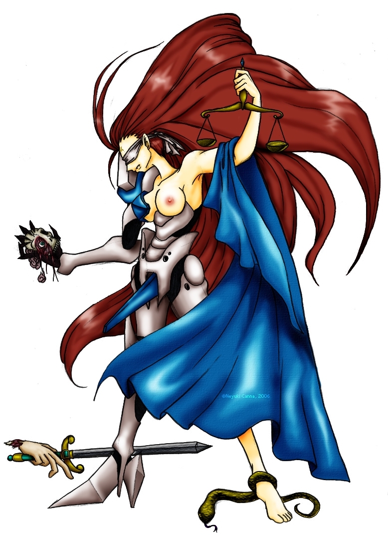 Tags: 2006armorarmoredasymmetrical clothesbangsbarefootblindfoldbrainbrown haircapeclawsexposed breasteyeballfemaleflowing hairfull bodygoreguilty gearhigh heelsholding objectholding weaponimageboardimpaledjustice (guilty gear)long hairneyuki cannaposeRule34severed handsevered headside viewskullsnakesoft shadingsoloswordsymbolismtagmewatermarkweaponweighing scalewhite background