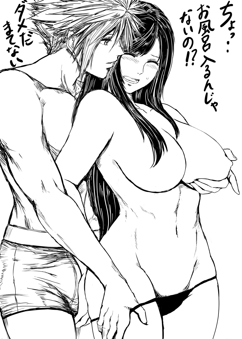 Tags: 1boyblushboxersbreast grabbreastsbulgecloud strifecommentary requestfemalefinal fantasyfinal fantasy viigrabbinggrabbing from behindhand on another's crotchhigh contrasthighresimageboardlarge breastslong hairmalemonochromemuscularmuscular malenipple tweaknipplespantiespanty pullpulled by selfRule34shirtlessspiked hairstraightsuta furachinatifa lockharttoplesstranslation requestunderwear