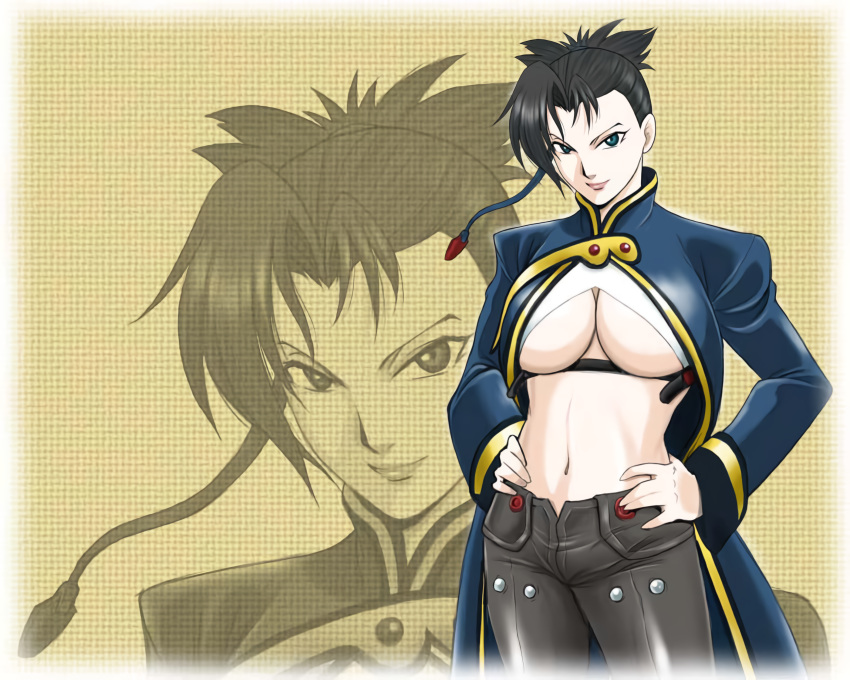 Tags: 1girlsbakuretsu tenshibig breastsblack hairbreastsbustyclothing cutoutconfidentfemalefemale onlygreen eyeshands on hipshighreslarge breastslegslooking at viewermidriffnavelpantspink lipsponytailposeposingRule34Search Engine Imageboardsei (bakuretsu tenshi)sensualsmilesolothighsunderboobunderboob cutout