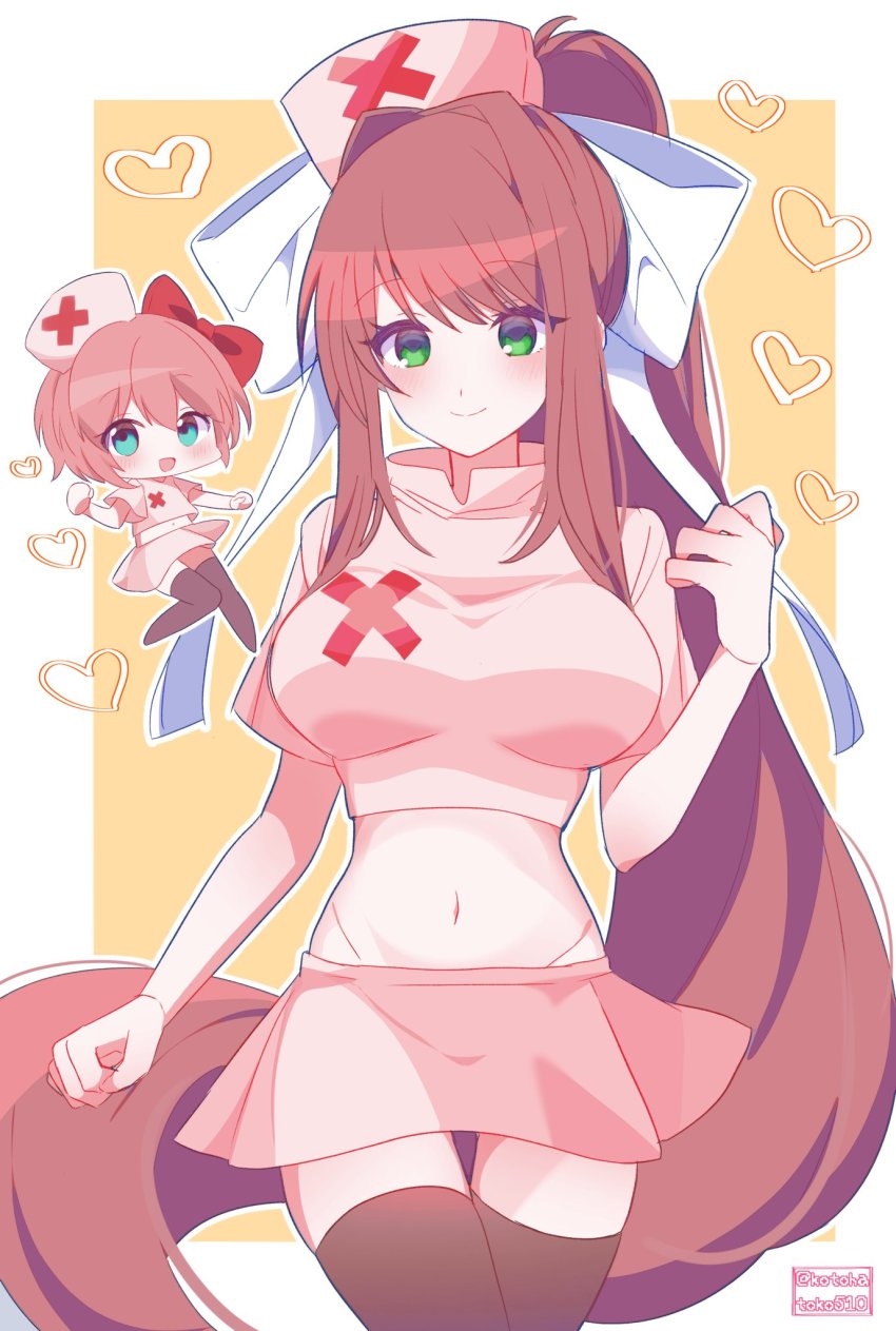 Tags: 2girlsalternate costumeblue eyesblushbow in hairbreastsbrown hairchibicrop topdoki doki literature clubgreen eyesimageboardkotohatoko510large breastslooking at viewermidriffminiskirtmonika (doki doki literature club)navelnursenurse capnurse uniformpink crop toppink hairpink skirtponytailRule34sayori (doki doki literature club)short hairskirtthighhighs