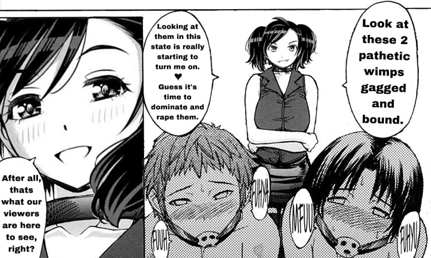 Tags: 1girls2boysaudiencebig breastsblack and whiteblack hairbondagebrown hairdominant femaledominatrixdoujinshienglishenglish textevil smilefemdomgaggaggedmalesubmonochromepigtailsRule34samejima reonaSearch Engine Imageboardshort hairsubmissive malevieweryankee jk kuzuhana chan
