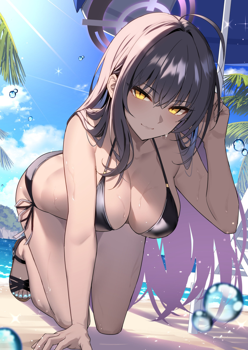 Tags: absurdresaosaki yukinabeachbikiniblack bikiniblack hairblue archiveblue skybreastscleavageclosed mouthcommentarydark skindark-skinned femalefemalefull bodyhair between eyeshalterneckhighreskarin (blue archive)large breastslong hairlooking at viewernail polishoutdoorspalm treeRule34sandalsSearch Engine Imageboardshadowside-tie bikini bottomsidelocksskysmilesolostring bikinisunlightswimsuitthighstoenail polishtoenailstreewetyellow eyes