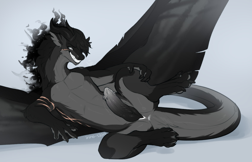 Tags: absurd resanusblack bodyblack furdragonferalfurfurred dragongenitalsgrey bodygrey furhi resimageboardinno-sjoalooking at genitalialooking at penismalemale onlynudepenisRule34scarsimple backgroundsmilesoloteeth