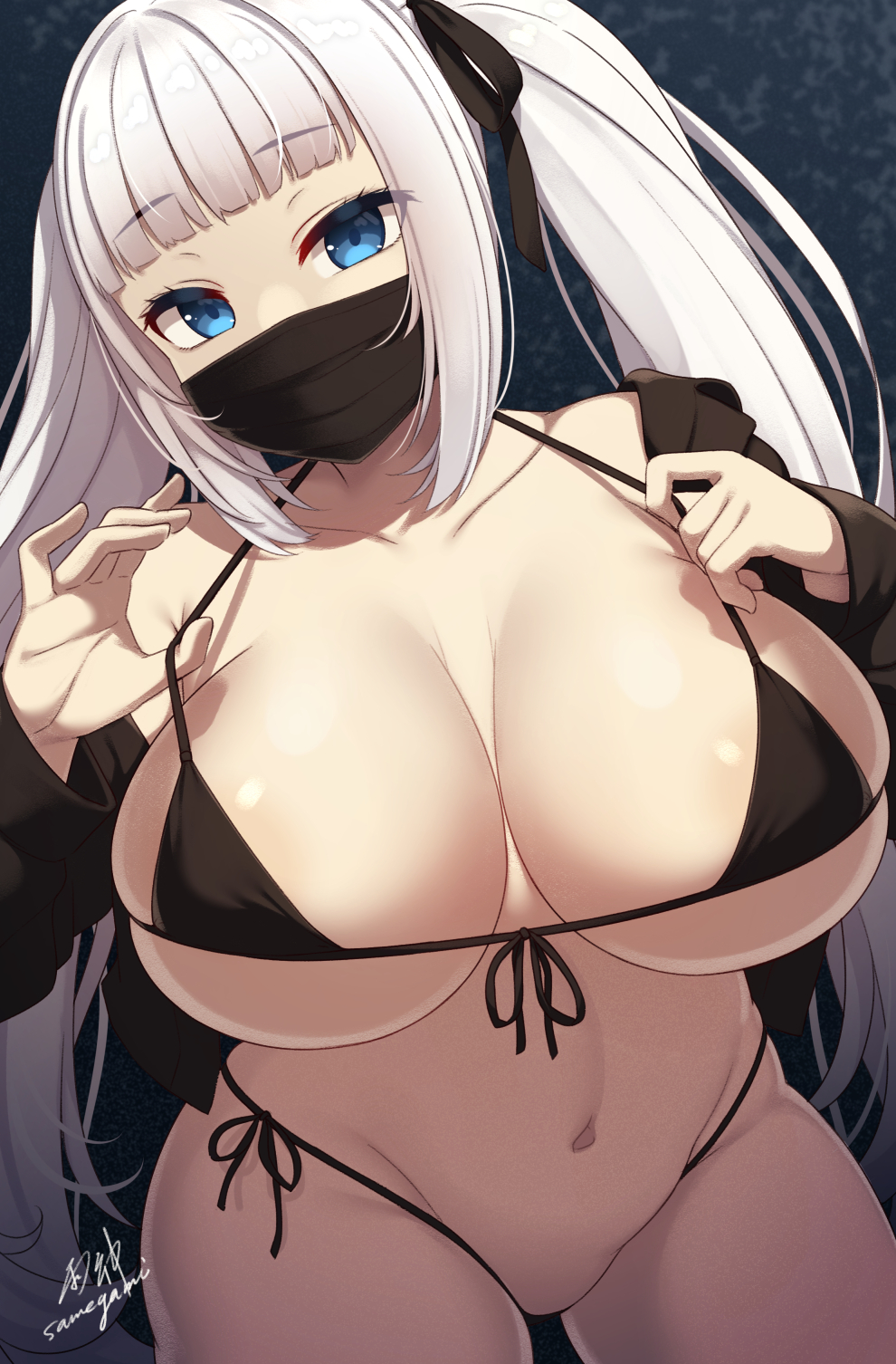 Tags: 1girlsbikiniblack bikiniblue eyesbreastsfemalehipshuge breastsimageboardlight skinlight-skinned femalemaskmassive breastsocoriginal characterRule34samegamithick thighsthighstwintailswhite hairwide hips