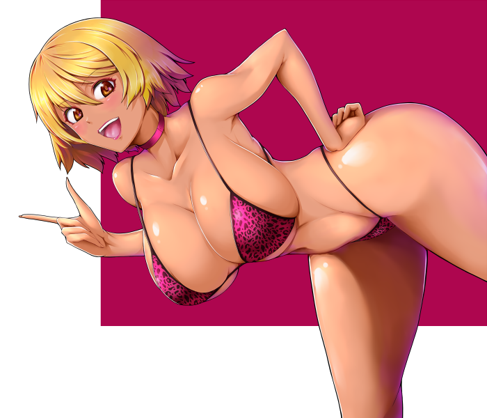 Tags: blonde hairbrown eyeschokercleavagedark skindark-skinned femalegangurogyaruimageboardlarge breastsleopard printleopard print bikinimackereloriginalplumppointingRule34shimesaba7572tannedv
