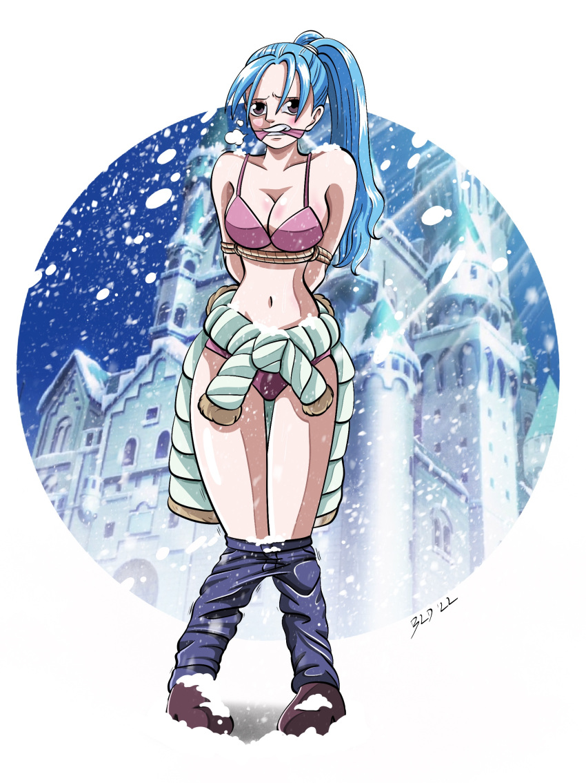 Tags: arms behind backarms tiedbikinibikini bottombikini topblue hairbondageboundbound armscleave gagcoldgaggaggedimageboardnefertari vivione piecepants downprincessRule34snowsnowingstrippedtied up