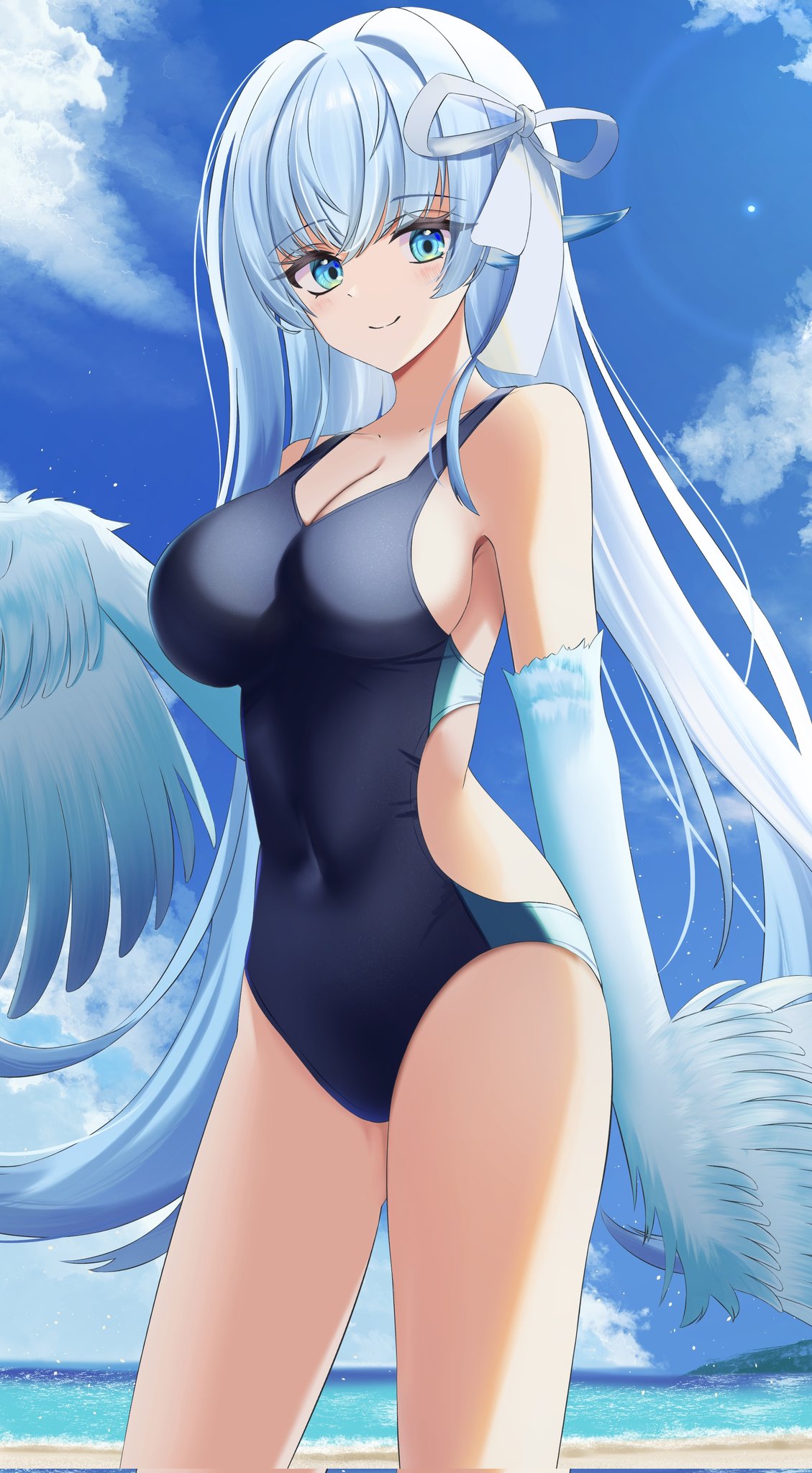 Tags: 1girlsblue eyesblue haireyebrows visible through hairfemalehair ornamenthair ribbonharpyharunokedamaimageboardindie virtual youtuberlibra historialight skinlight-skinned femalelooking at viewermonster girlRule34smilesoloswimsuitvirtual youtuberwa onlywings