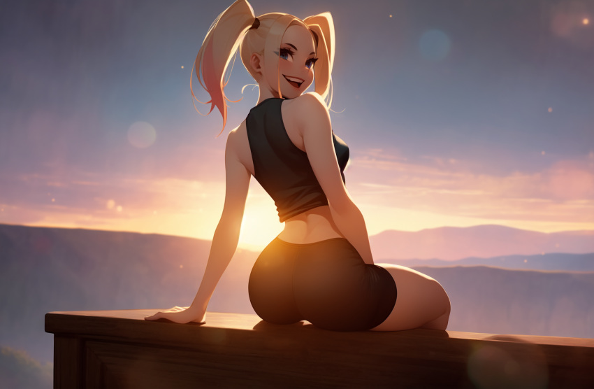 Tags: 1girlsai generatedblack shortsblonde hairblue eyescrazy smiledc comicsdetailed backgroundfemalefrom behindharley quinnher brother drives a subaruimageboardlooking backmountainoutdoorspetitepetite femaleRule34self uploadshortssittingsmilestable diffusionsunsettwintails