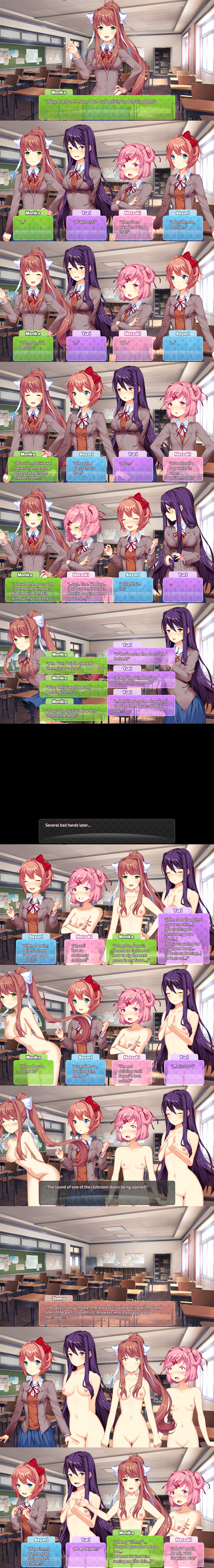 Tags: accurate art styleblue eyesblushcaughtcaught nakedcomicddlc text boxdialoguedoki doki literature clubembarrassedembarrassed naked femaleembarrassed nude femaleenffemalegreen eyeshairbowlooking at viewermonika (doki doki literature club)nakednatsuki (doki doki literature club)nudenude femalepanelspink eyespink hairpokerponytailpurple eyespurple hairred bowsayori (doki doki literature club)self insertspritesprite editstrip pokertexttext boxthelewderturneryuri (doki doki literature club)