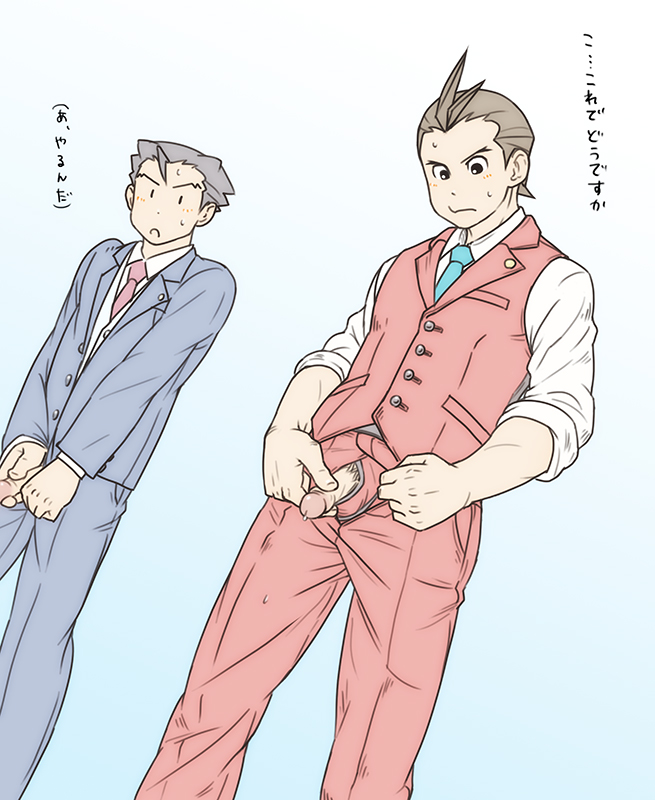 Tags: 2boysage differenceapollo justicebathroomblushblushingclothedcolorcoloreddripflaccid penisforeskinforeskin foldsformal wearfully clothedglansgradient backgroundgyakuten saibanhumanimageboardintactjapanese textmalemale onlymale pubic hairnaruhodou ryuuichipale colorpants unzippedpenispenis comparisonpenis outretracted foreskinRule34shysmooth penissuitsurprisedtagmetietorte (triggerhappy)translation requestuncuturinalvestyaoi