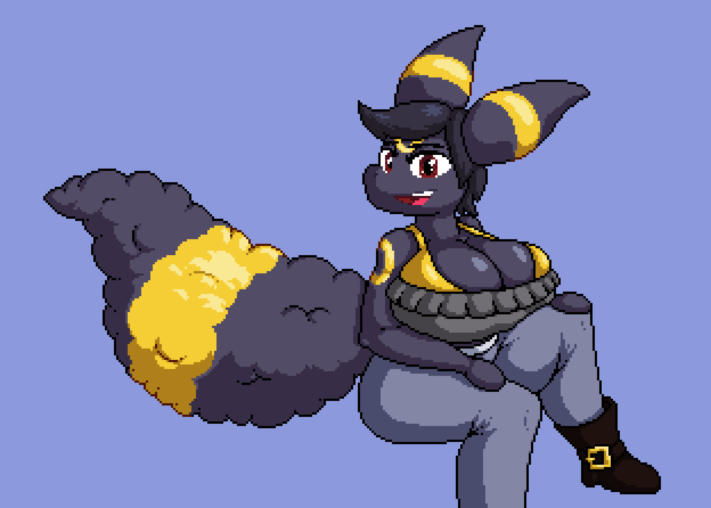 Tags: 1girlsalternate version availableanthrobootsbrabreasts bigger than headcleavagecleavage overfloweeveelutionfan characterfluffy tailfurryhairhand on kneehand on thighimageboardisagoodfriendlooking at viewerocopen mouthpantspixel artpokémon (species)pokemonpoofy tailRule34sittingsmilingsolothree-quarter portraitumbreon