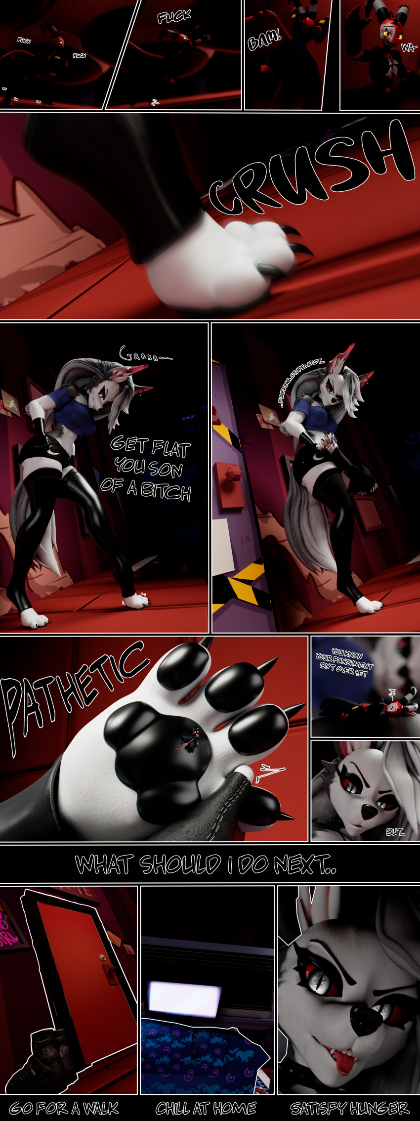 Tags: 1boy1girls3d3d (artwork)angryanthroblitzo (helluva boss)clothedclothingdemonfemalegiantesshelluva bossimageboardkeynorloona (helluva boss)macromicropawpadspawsred eyesrule 34size differencestepped onstockingstagmetexttonguetongue outviewed from belowwhite bodywhite furwhite hair
