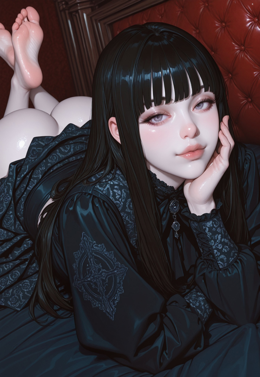 Tags: ai generatedamaranthineassbare asscivitaidark hairdressfeetfeet upfemaleheiress of the hidden hallshime cutimageboardlaced corsetlying on bedlying on stomachpale skinrule 34toesvictorian dress