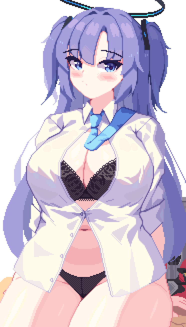 Tags: animatedblack brablack haloblack pantiesblinkingblue archiveblue eyesblue necktieblushbrabreastsbreathingcleavagecollared shirtfemalehalohighresimageboardlarge breastslong hairnavelnecktiepantiespartially unbuttonedpiaomaopixel artpurple hairrule 34shirtsimple backgroundsittingsolotwo side upunderwearwhite backgroundwhite shirtyuuka (blue archive)