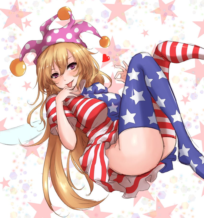 Tags: 1girlsamagi (amagi626)american flagamerican flag legwearassass focusbig assblonde hairbreastsclownpiececurvyfairyfairy wingsheart symbolimageboardjester hatlarge asslarge breastslong hairok signpurple eyesrule 34solothick thighsthighhighsthighstonguetongue outtouhouwings
